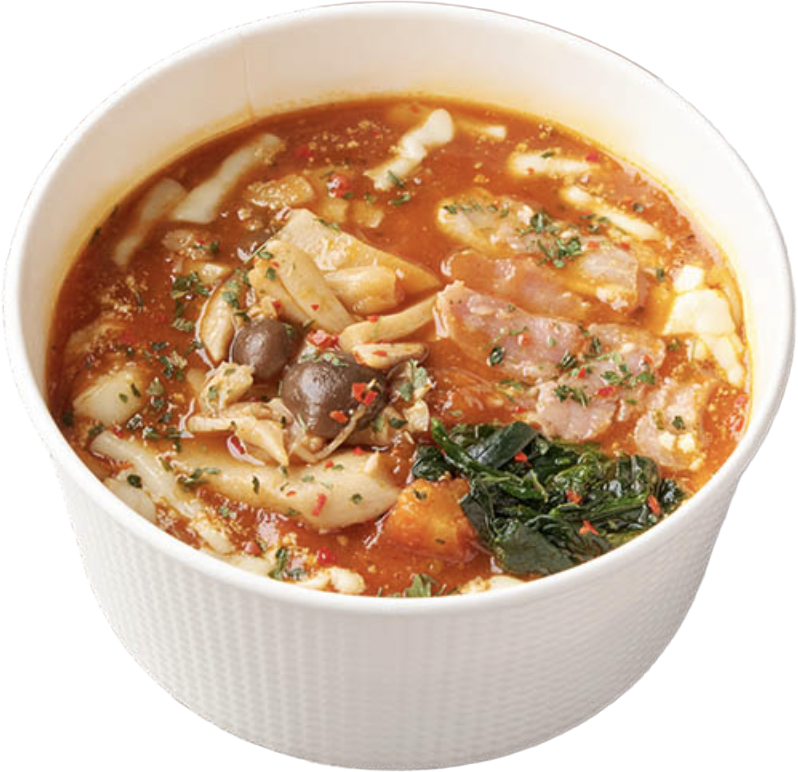 しっかり食事を取りたい方は、ファミリーマートのスープパスタがおすすめ。「きのことトマトのスープパスタ」などはスープの量が多く、冷めにくい工夫がされています。乾燥しがちな冬の夜、水分と塩分を美味しく補給できる優秀なメニューです。