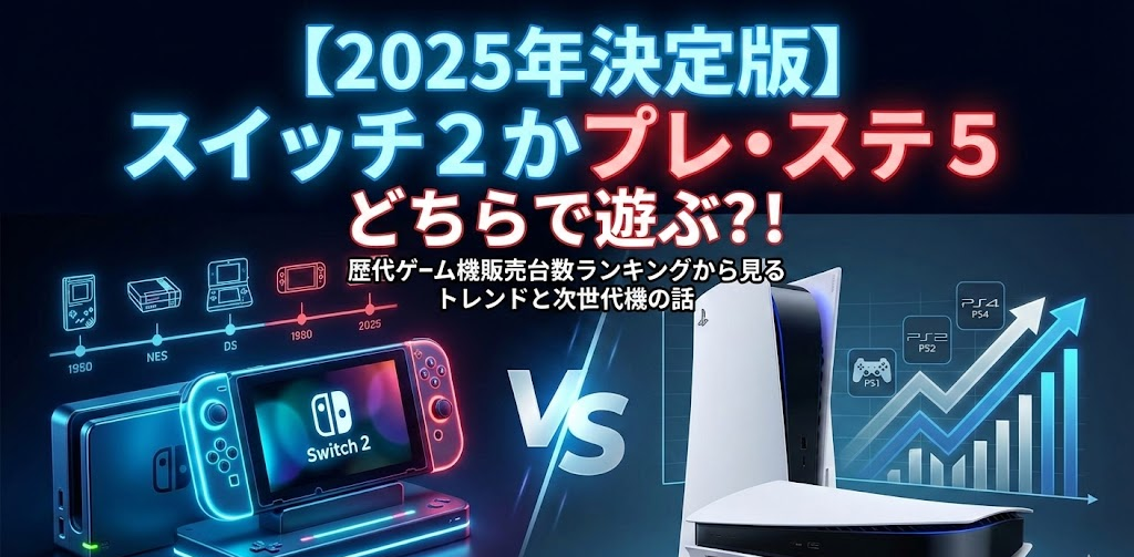 ゲーム 【2025年版】スイッチ2かプレステ5どちらで遊ぶ?! 歴代ゲーム機販売台数ランキングから見るトレンドと次世代機の話 らんくさん 11月 24, 2025 0 2025年11月次点での最新家庭用ゲーム… 「続きを読む」